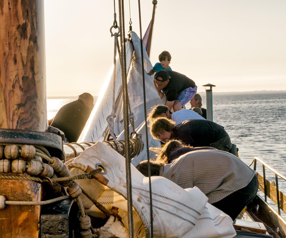- Wie viele Personen können maximal mitfahren?Der Scaldis fasst maximal 33 Personen und der Vrijbuiter maximal 35. Es ist eine kleine Gruppe und wir möchten, dass es so bleibt.