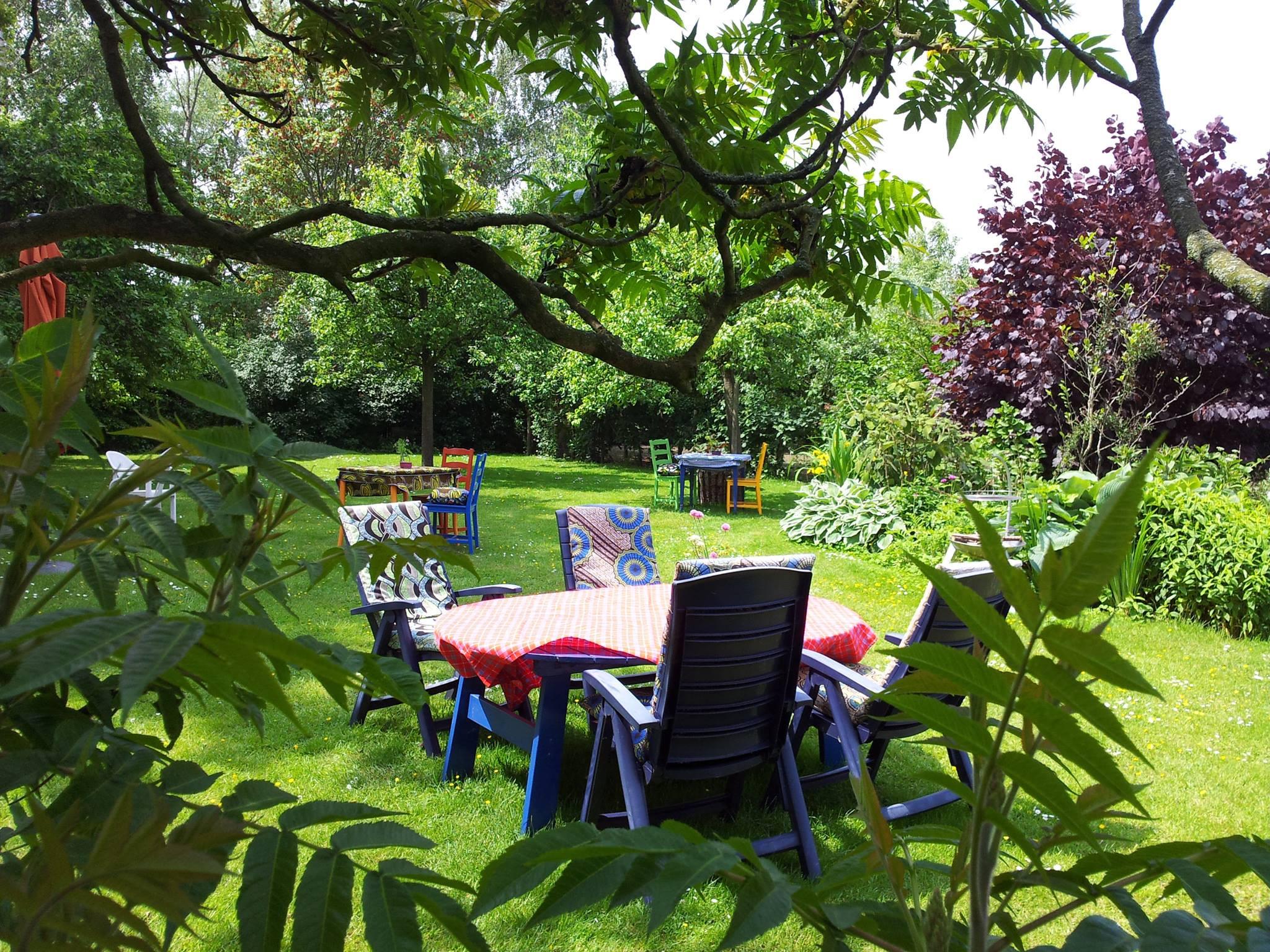 Genieße die gemütliche Terrasse bei Theetuin Koewacht! Wähle einen Platz im grünen Garten und lass dich von den Leckereien überraschen, von Gebäck bis zu frisch gepressten Säften. Alles wird mit frischen Zutaten aus dem eigenen Garten zubereitet, einschließlich Eiern, Teeblättern, Beeren und Milch von lokalen Quellen. Entspanne dich mitten im Grünen und lass dir die Köstlichkeiten zu dir bringen.
