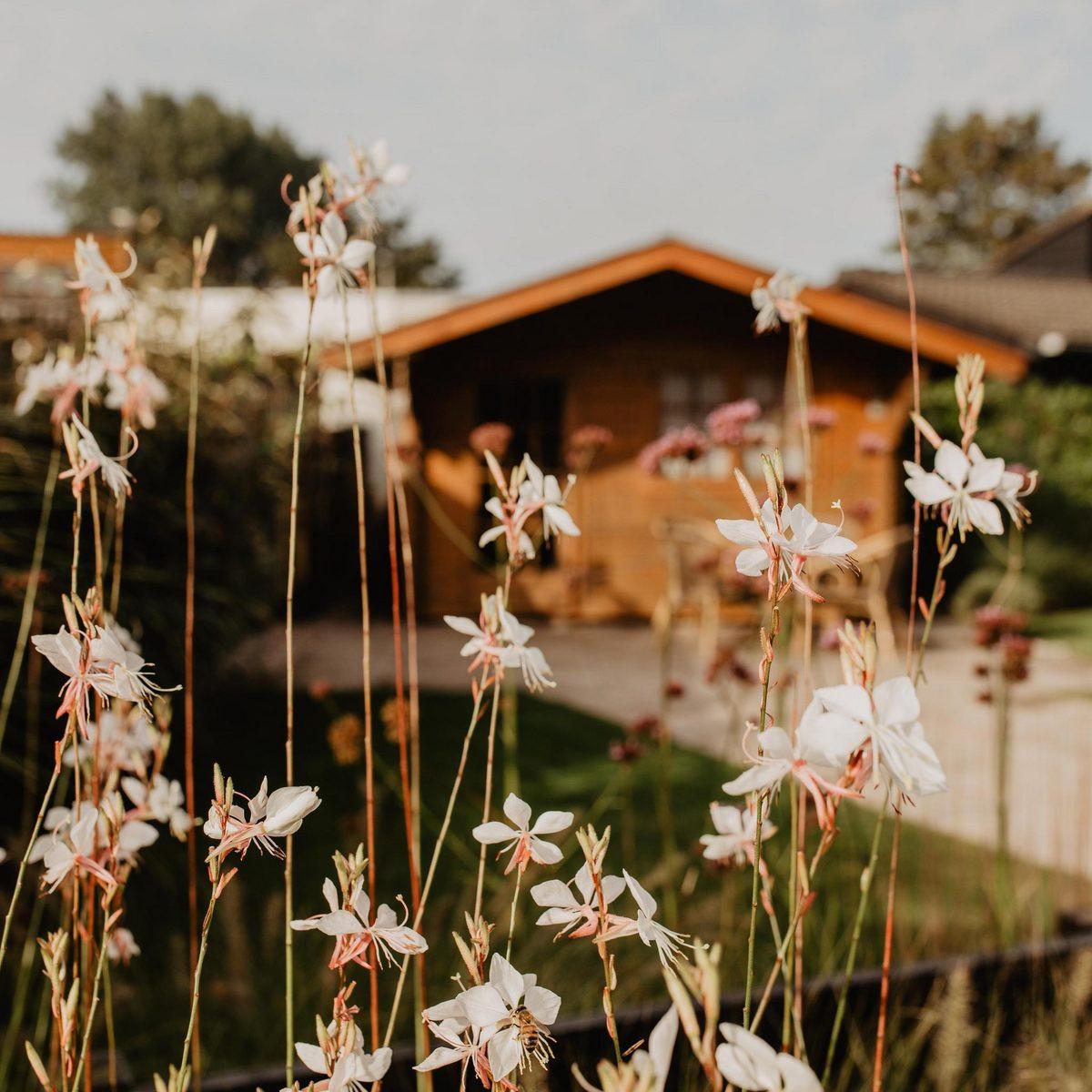 Attraktiver Bungalow mit großem Garten mit mehreren Terrassen.