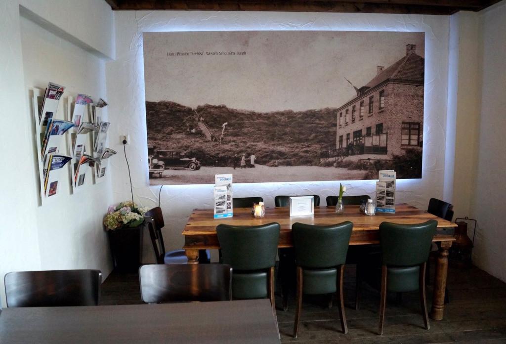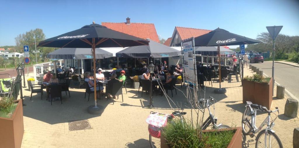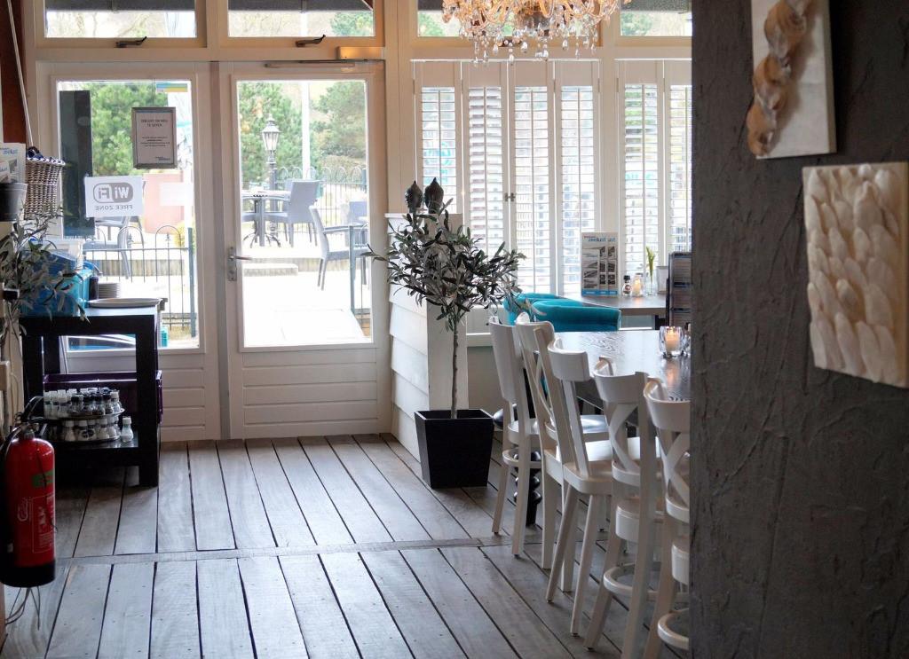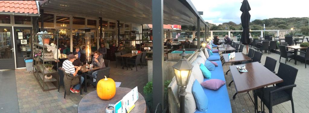 Met uitzicht op de duinen en een terras gericht op het zuidwesten geniet je volop van de omgeving. Met een uitgebreide lunch, diner en wijnkaart is er voor elk wat wils.