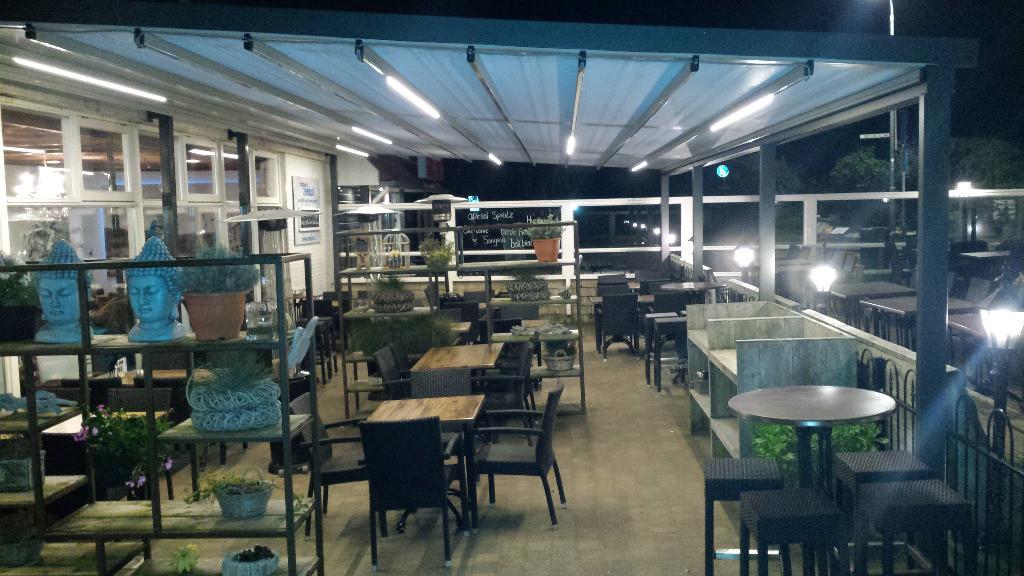Binnen in de sfeervolle brasserie of buiten op het riante terras