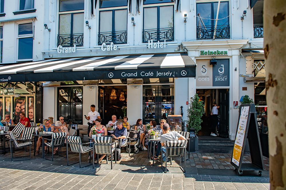 Grand Café Jersey | Goes Midden in het centrum van winkelstad Goes, op de Grote Markt, ligt Amadore Grand Café Jersey. Het statige witte pand met ruim buitenterras biedt het perfecte decor om sfeervol uit eten te gaan.
