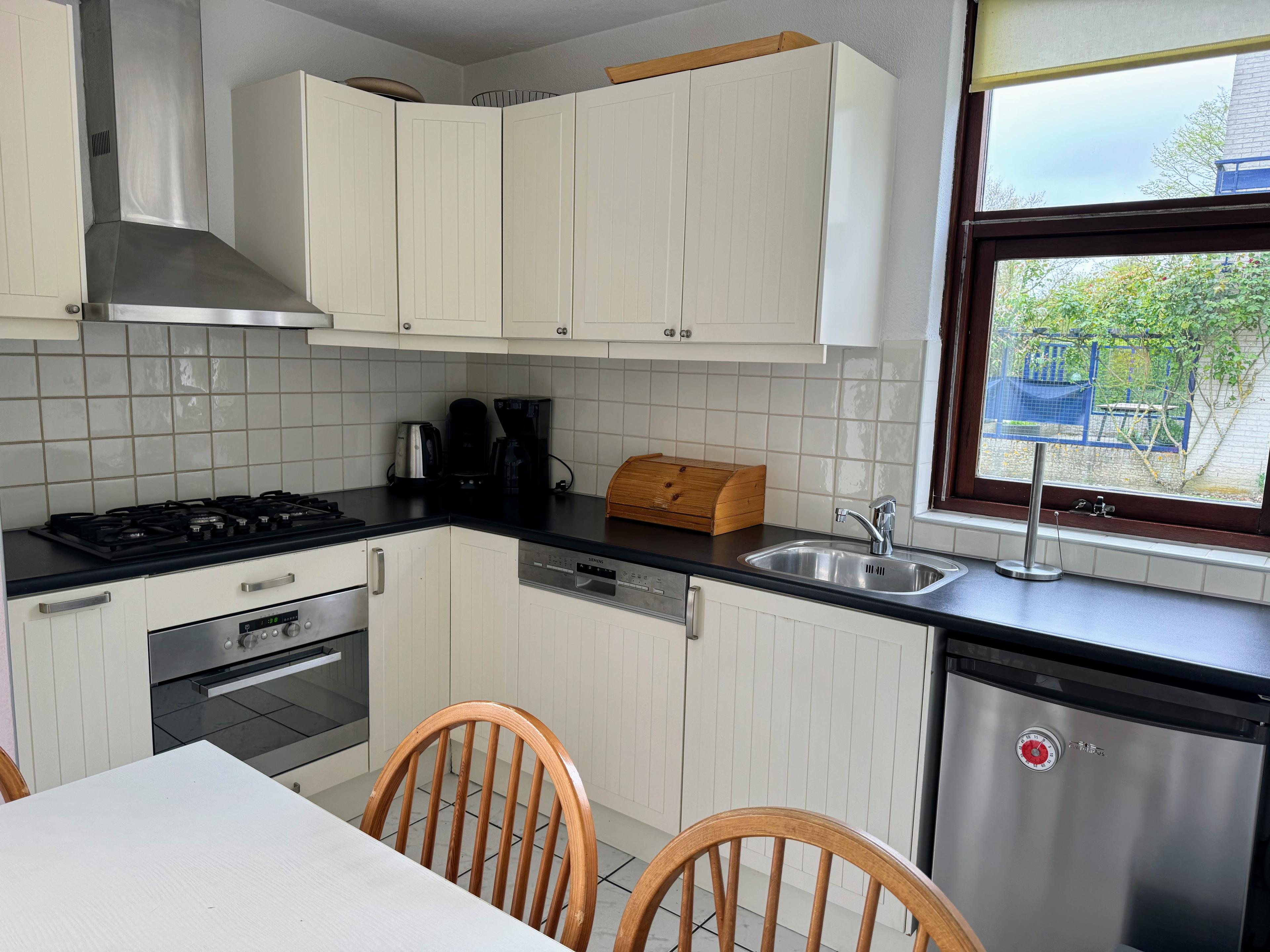 Ideaal gelegen aan het begin van Breezand 2, licht ingericht, mooie tuin en balkon op het zuiden. 2 Parkeerplaatsen bij het huis.