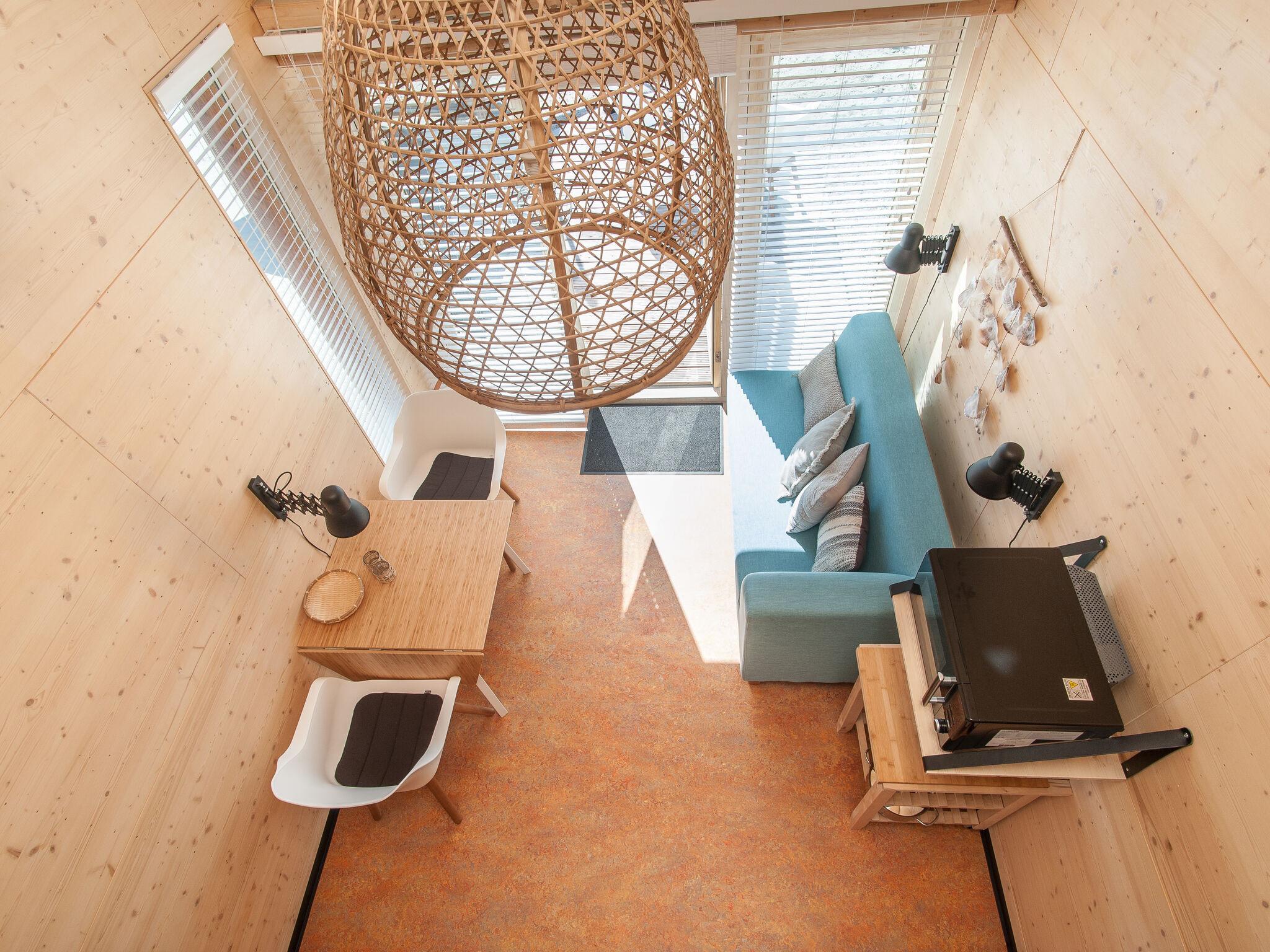 Niet inleveren aan comfort en toch je ecologische voetafdruk minimaliseren? Dat kan in deze 4-pers. beach cottages (tiny houses), gelegen direct aan het Grevelingenmeer op ECO Resort Grevelingenstrand. Verborgen in het landschap van het 9 hectare grote natuurgebied De Kabbelaarsbank, op de grens van Zuid-Holland en Zeeland. De rookvrije cottages zijn ontworpen volgens een uniek concept dat autarkisch, biobased en circulair is. Dit wil zeggen dat de cottage volledig is afgewerkt en ingericht met natuurlijke materialen en zelfvoorzienend is. Een voorbeeld; het larikshout is beschikbaar gesteld door Staatsbosbeheer en de cottages zijn geïsoleerd met hennep. Het is een zogenaamd Greenhuus; net zo duurzaam in ontwerp als in gebruik.
