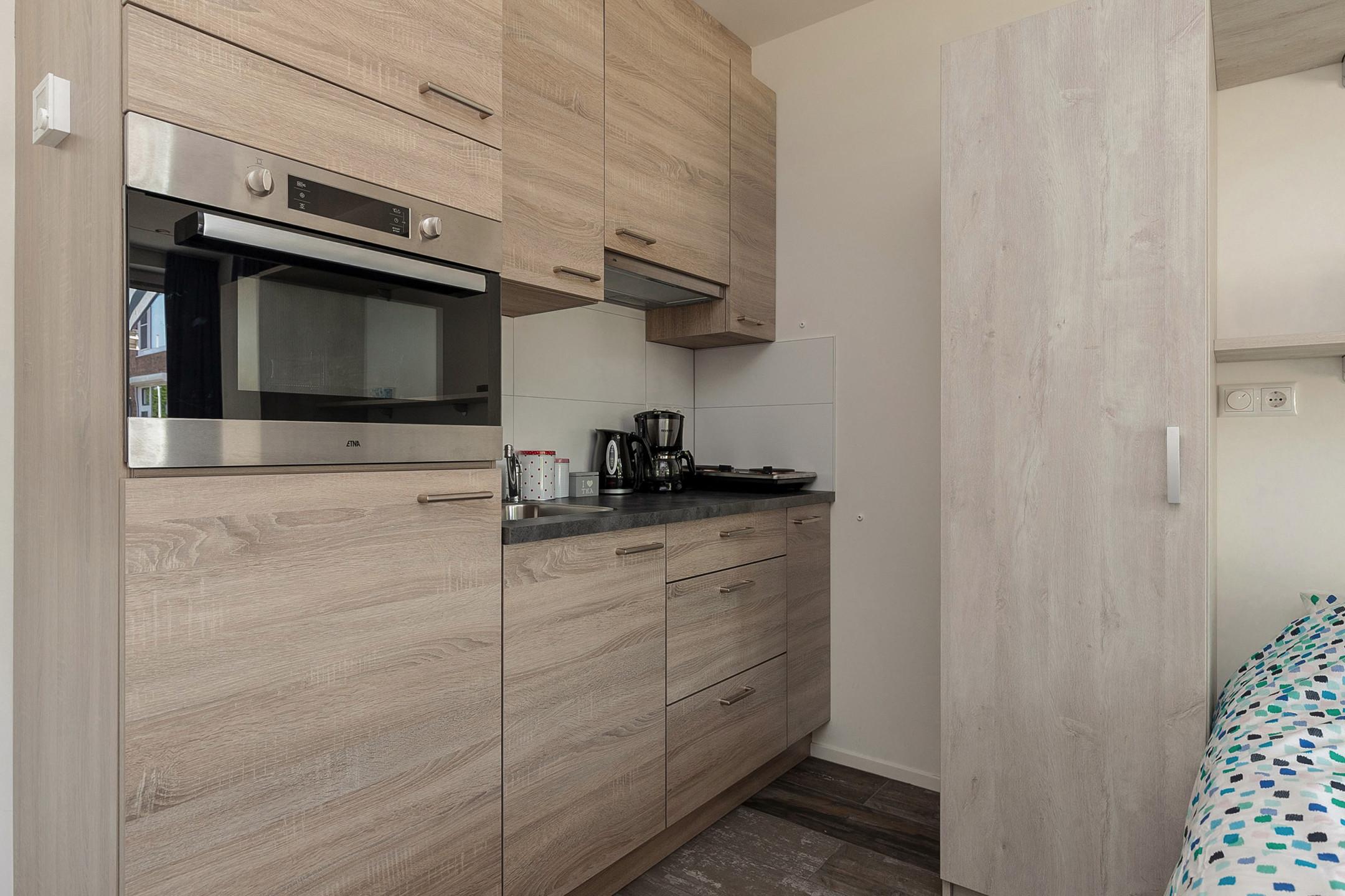 Studio 4 bevindt zich aan de achterzijde van het complex en is geschikt voor maximaal 2 personen. Deze vakantieaccommodatie is volledig uitgerust met een compleet ingerichte keuken, een eigen badkamer en een gezellige zithoek. Geniet van het ochtendzonnetje op het eigen, afgesloten terras op het oosten. Het opladen van je elektrische auto is mogelijk.